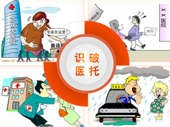 (1)“医托”往往以关心为诱饵“钓鱼”。其实,医托的手段并不高明,只是利用患者“有病乱投医”的心理,和患者搭腔令其有产生“遇到救星”之感。老的唱、少的合,年长的做钩、年幼的做饵,你得了什么病,想什么病,“医托”都有治这个病的专家。