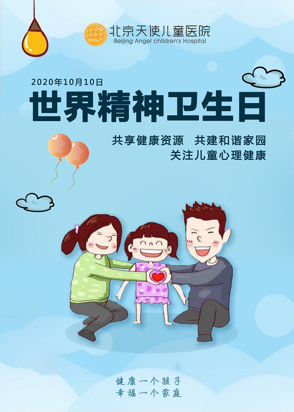 2020年10月10日是世界精神卫生日,旨在通过多途径的宣传教育,让儿童青少年掌握精神卫生、心理健康相关知识,使家长、学校、社会了解儿童青少年心理特点,全社会共同维护和促进儿童青少年心理健康,拥有健康快乐的人生。